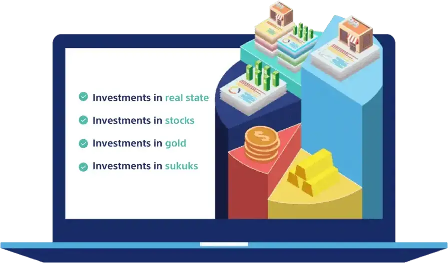 A collection of investments from different assets, such as stocks, Sukuks, real estate, and commodities, to reduce the overall risk of investing through diversification and to increase returns in the long term. We help you create a flexible investment portfolio through simple steps. How?